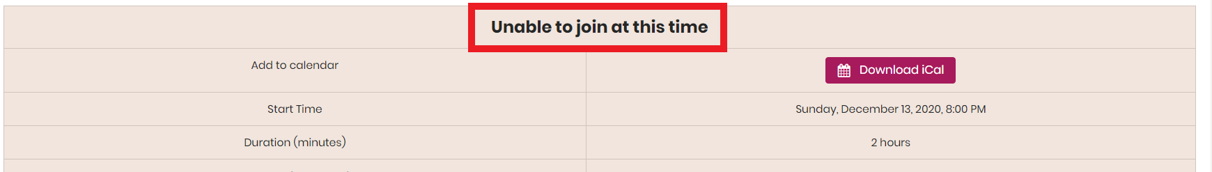 5) The meeting link changes every week and is only available 10 MINUTES before the class start time. 10 minutes before class, the message 'Unable to join at this time', automatically changes to "Join now".