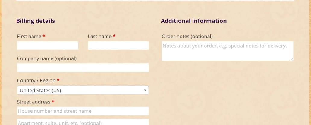 IMPORTANT: If the name and the phone number in the billing information is not the same as the information of the student registering for the course, please mention this in the additional information section under order notes.