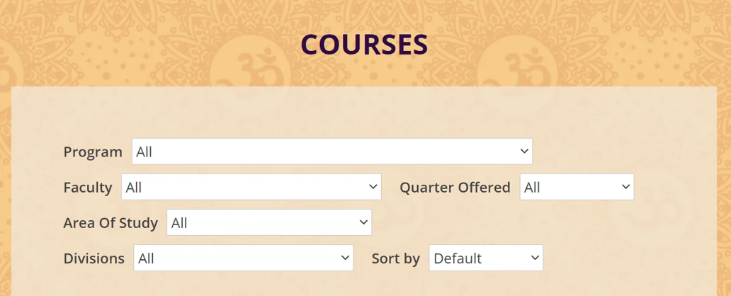 Here you can filter by the program, quarter offered, faculty, area of study, and division using the dropdown menu.