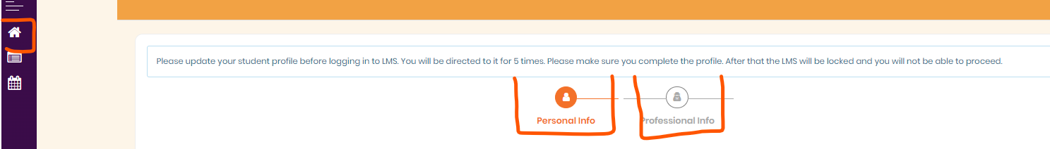 To go to the LMS dashboard, all the students should click on the dashboard icon after saving the profile information and then they will be able to access the courses. (Please refer to the image below.)